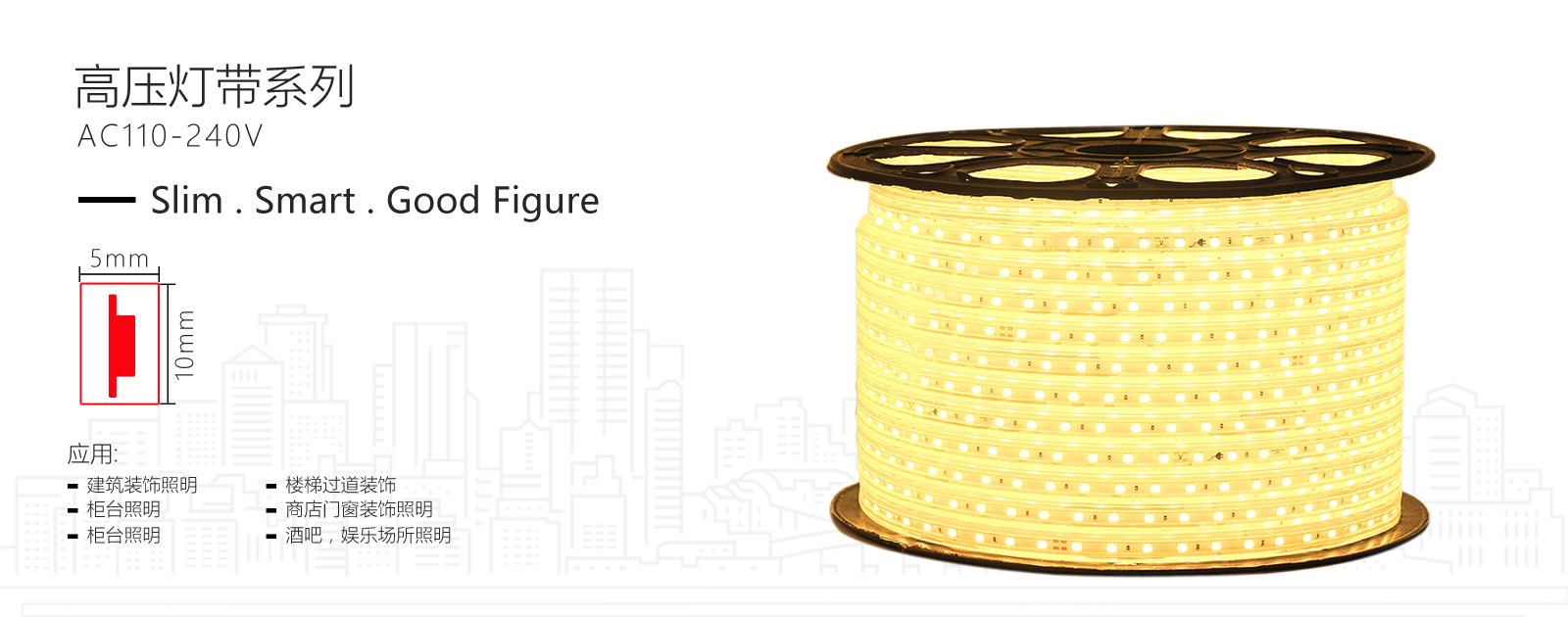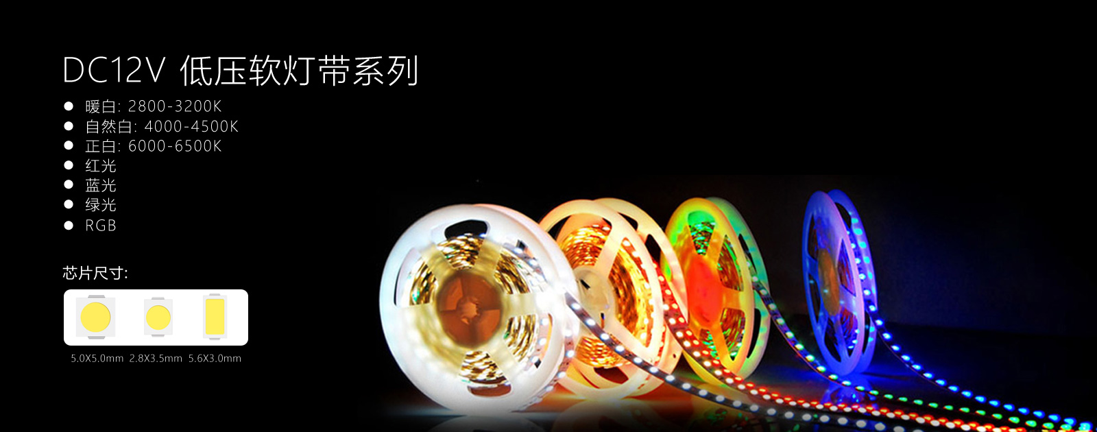 主要產(chǎn)品: 1、12V低壓燈帶 2、220V高壓燈帶 3、側(cè)發(fā)光高壓燈帶 4、防水筒燈 5、硅膠霓虹管燈帶
