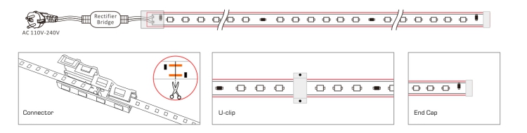 4、Any two strips can be connected by easy connector which comes with silicon circle.